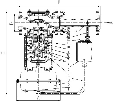 圖一bZZYP-16K型自力(li)式壓力調節閥(fa)